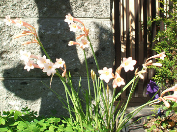 キルサンタスという花です。最初水仙の一種かなと思ったのですが、名前がわかりません。ネットで調べたらようやくキルサンタスという名がわかりました。南アフリカ原産のヒガンバナ科の花だそうです。トランペット状に突き出したピンクのかわいい花ですね。ヒガンバナ科なのでやはり水仙とは多少近い仲間なのかも知れません。